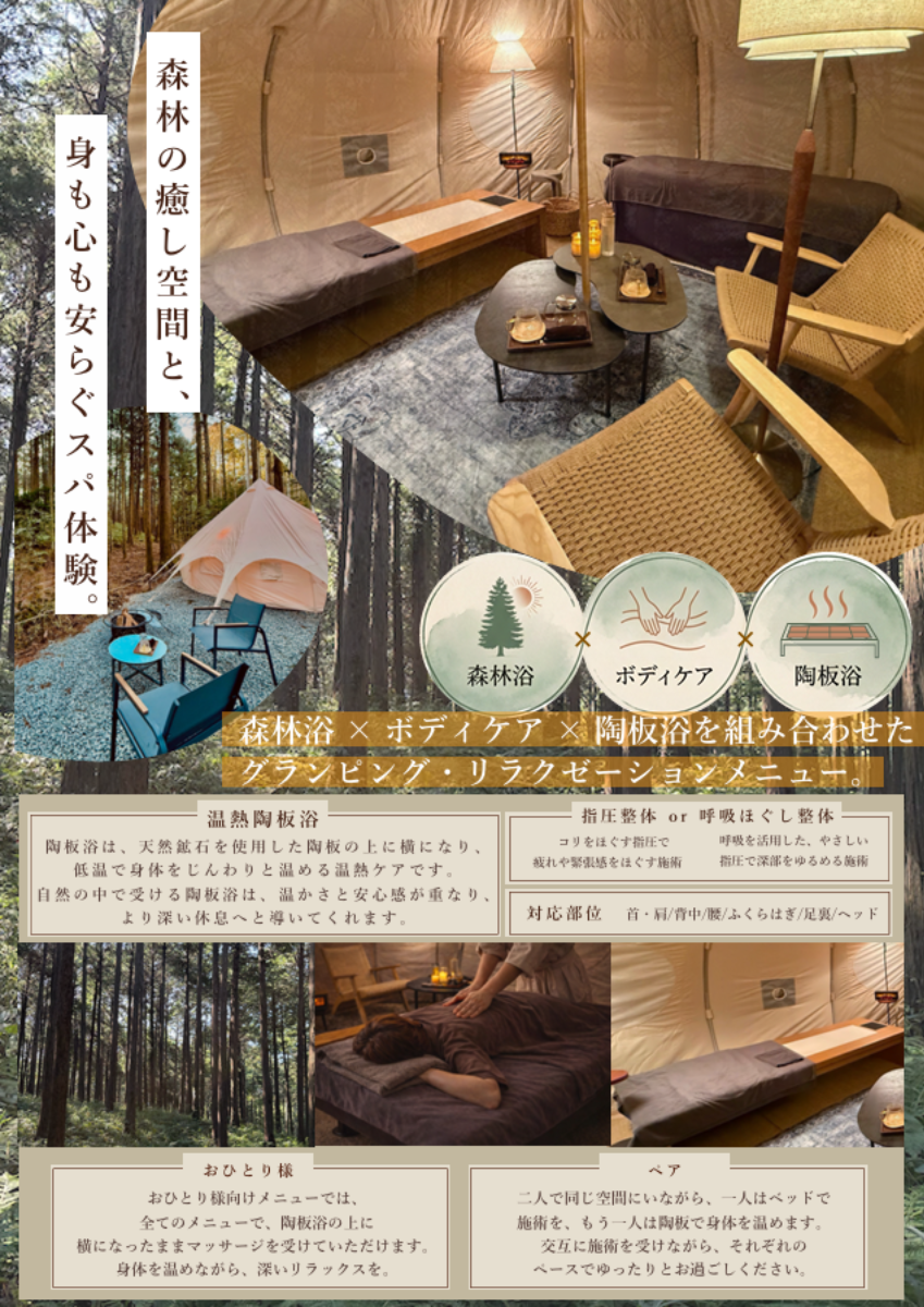 森林浴 × マッサージ × 陶板浴を組み合わせた